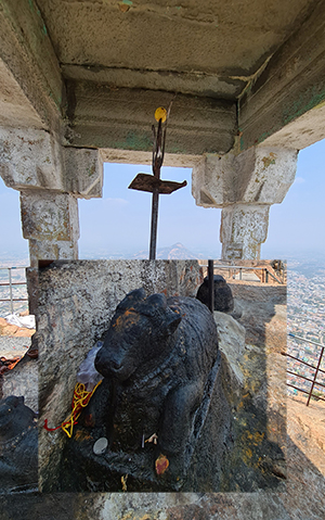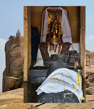 மகரிஷியின் இந்த அற்புத வழிபாட்டை புரிந்து கொள்ள முடியாததால்தான் மகரிஷி இவ்வாறு “துளைத்து” சென்றார் என்று கூறுகிறோம். “தோளா முத்தச் சுடரே” என்றுதானே மணிவாசகப் பெருமான் இறைவனைப் புகழ்ந்து பாடுகிறார். அவ்வாறிருக்க உத்தம பக்தியில் உன்னதம் அடைந்த பிருங்கி மகரிஷி இறைவனின் அர்த்தநாரீஸ்வரக் கோலத்தை துளைத்துச் செல்வாரா என்ன ? ஒருவேளை அவ்வாறு துளைத்துச் செல்வதாகக் கொண்டாலும் அது சிவனின் உருவத்தையோ, சக்தியின் உருவத்தையோ அல்லது இவ்விரு மூர்த்திகளின் இணைந்த கோலத்தையோ துளைத்துச் செல்வதாகத்தானே அமையும் ? எதற்கும் இறுதி பதில் என்பது சித்தர்கள் அளிப்பதுதானே ? நாம் இந்த கேள்வியை நம் சற்குருவிடம் சமர்ப்பித்தபோது தமக்கே உரிய புன்னகையுடன், “என்ன சார், பிருங்கி மகரிஷி லெவலில் இருப்பவர்கள் சுவாமியைத் துளைத்துச் செல்வார்களா ? ஏன் இந்த சாதாரண விஷயத்தை நீங்கள் ஆத்ம விசாரம் செய்து பார்க்கவில்லை. இறைமூர்த்திகள் அர்த்தநாரீஸ்வரக் கோலத்தை மேற்கொண்டதும் அதைக் கண்டு திகைத்து வியந்து நின்றார் பிருங்கி மகரிஷி. முதலில் தான் இறைக் கோலத்தைத் துளைத்துச் செல்ல வேண்டும் என்ற எண்ணமே அவருக்குத் தோன்றவில்லை. ‘இவ்வாறு அம்மையுடன் அப்பனாக எழுந்தருளும் இறைக் கோலத்தை தரிசனம் செய்வதற்கு தான் என்ன அப்படி ஒரு தவத்தை செய்து விட்டோம் ?’ என்ற எண்ணமே மகரிஷியின் வினயத்திற்கு காரணமான பக்தியாகும். இருந்தாலும் தன்னுடைய சிவ நிஷ்டா பக்தியைக் கைவிடத் தயாராக இல்லாத பிருங்கி மகரிஷி திருச்செங்கோட்டில் திகழும் தற்போது பிருங்கி பர்வதம் என்று அழைக்கப்படும் பாறைப் பகுதியில் அமர்ந்து தவத்தில் ஆழலானார். யுகங்கள் கடந்தன. பக்தன் ஒருவனின் பக்தியில் உலகம் மூழ்கினால் அதைக் களைய வேண்டியது எம்பெருமானின் பொறுப்பல்லவா ? இந்த இக்கட்டான சூழ்நிலையிலிருந்து உலகைக் காக்க, உமையவள், மகரிஷியின் நிஷ்டா பக்திக்கு களங்கம் ஏற்படாமல் இருக்க உலக சிருஷ்டிக்கு முந்தைய ஆதித் தோற்றமான பிரணவ ஒலித் தோற்றத்தில் நிலை கொண்டான் எம்பெருமான். எப்படி ஒரே அறையில் மெழுகுவர்த்தியின் தீபம், அகல் விளக்கின் தீபம், மின்சார பல்பின் தீபம் இவை ஒன்றுக்கொன்று முரண்படாமல் ஒளி வீசுகின்றனவோ, எப்படி மிருதங்கம், நாதஸ்வரம், ஆலயமணி ஓசைகள் ஒன்றுக்கொன்று இணைந்து ஒலிக்கின்றனவோ அதுபோல் எம்பெருமானின் சிவக் கோலமும், சக்தி அம்சமும் தனித் தனியாக ஒலி ரூபத்தில் தோன்றவே அந்த ஒலிப் பிழம்பில் ஒலி ரூபமாக வண்டு வடிவில் வலம் வந்து சிவபெருமானை வணங்கினார் பிருங்கி மகரிஷி,” என்று பிருங்கி நாத தரிசனத்தை நமக்கு விளக்கினார் சற்குரு. இந்த அற்புத திருவிளையாடல் நிகழ்ந்த திருத்தலமே திருச்செங்கோடு. அந