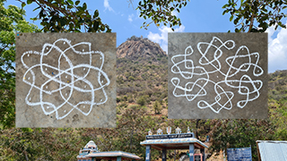 இந்த ஆனந்தத்தில் பங்கேற்றவர் வெகு நாட்கள் குழந்தை இல்லாமல் ஏங்கிய ஒரு வங்கி அதிகாரி என்பதும் உங்களை ஊக்குவிக்கும் ஒரு செய்தியே. காது உள்ள ஊசி என்ற ஆத்ம விசாரத்திற்கு அடுத்த கட்டத்தில் வருவதே இந்த திருவெண்காடு அம்பாள் அடியாரை இடுப்பில் சுமந்த கோலமாகும். ஆத்ம விசாரம் என்பது அனைவராலும் நிறைவேற்றக் கூடிய ஒரு இறை பூஜையாக அமையாததால் அனைவரும் சிறப்பாக பெண்கள் அனுசரிக்கக் கூடிய வழிபாடே கோலமாகும். இந்த வருடப் பிறப்பு மகரம் என்ற இரட்டைப் படை ராசியில் தோன்றுவதால் ஒற்றைப் படை, இரட்டைப் படை என்ற இரண்டு அம்சங்களையும் குறிக்கும் இடுக்குப் புள்ளிக் கோலங்களை இந்த வருடம் முழுவதும் ஆலயங்களில், இல்லங்களில், அலுவலகங்களில் வரைவது சிறப்பாகும். இங்கு அளித்துள்ள ஐந்து புள்ளி கோலம் முதற்கொண்டு அவரவர் வசதி வாய்ப்பைப் பொறுத்து எத்தனை வகையான, எத்தனை புள்ளிகள் உடைய கோலங்களை வேண்டுமானாலும் வரைந்து இறையருள் பெறலாம். இந்த கோலத்தில் வைக்கப்படும் புள்ளிகள் அனைத்தும் இடுக்குப் புள்ளிகளாக இருக்க வேண்டும் என்பதே சித்தர்கள் சிபாரிசு செய்யும் ஒரே விதியாகும். இங்கு அளித்துள்ள கோலங்கள் மாதிரிக்காக மட்டும் அளிக்கப்பட்டுள்ளன. இந்த கோலங்கள் ஏதாப்பூர் அருகிலுள்ள கொப்புகொண்ட பெருமாள் மலையில் இடப்பட்டாலும் அடியார்கள் தங்கள் வசதிக்கேற்ப எத்தலத்தில், இல்லத்தில், கிரிவலப் பாதைகளில் வேண்டுமானாலும் இட்டுப் பலன் பெறலாம். திருத்தலங்களில் கிரிவலப் பாதைகளில், மகான்களின் ஜீவசமாதிகளில் இடப்படும் இத்தகைய கோலங்கள் அவரவர் இல்லங்களில் மட்டுமின்றி சமுதாயத்தில் கணவன் மனைவி இடையே, முதலாளிகள் ஊழியர்கள் இடையே, கட்சித் தலைவர்கள், தொண்டர்கள் இடையே அன்பையும் அரவணைப்பையும் தோற்றுவிக்கும் என்பதை நடைமுறையிலேயே காண முடியும். கோலங்கள் என்பவை நாம் நினைப்பதுபோல் மக்களின் சமீபத்திய கண்டு பிடிப்பு கிடையாது. புராதன காலத்திலேயே ரிஷி பத்தினிகள் தங்கள் குடிசை வாசலில் பசுஞ் சாணத்தால் மெழுகி அதன் மேல் கல் உரலில் இடித்த பச்சரிசி மாவு கொண்டு கோலம் இடுவதை தங்கள் நித்திய பணியாக நிறைவேற்றி வந்தனர். கோலம் என்பது ஆடை அணிந்தோ, ஆடை இல்லாமலோ, ஏழையாகவோ பணக்காரனாகவோ, அன்புடையவனாகவோ, இரக்கமற்றவனாகவோ இவ்வாறு பல நிலைகளில் இருக்கும் மனிதப் பண்புகளையும் குறிப்பதுதானே. இவ்வாறு நீராடலுக்காகச் சென்ற ஸ்ரீகௌதம மகரிஷி அங்கு நதி உறங்குவதைக் கண்டு நீராடாமல் திரும்பி விட்டார் என்பதை நாம் அறிவோம். அப்போது குடிசையின் உள்ளே இருந்த மனைவியின் நிலையை வாசலில் முதல் நாள் இடப்பட்ட கோலமும் உறுதி செய்தது என்பதே சித்தர்கள் கூட்டும் தெளிவு.
