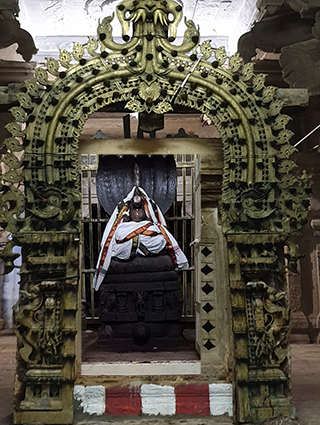 இங்கு சுந்தரர் பெருமானுக்கு முன்னே சேரமான் குதிரையில் பயணம் செல்வதைக் காண்கிறோம். குதிரைக்கு முன்னே கழுதை வந்ததாக ஸ்பின் (சுழற்சி) தத்துவம் விளக்குகிறது என்பதைப் புலப்படுத்தியவரே நம் சற்குரு. இவ்வாறு எதற்கு முன் எது வந்தது என்ற அறிவை விருத்தி செய்யக் கூடியதும், அறிவின் பேரருள் களஞ்சியமே ஸ்ரீநெல்லையப்பர் ஆலயம் ஆகும். இங்குள்ள சுதையாலான நந்தி மூர்த்தியைச் சுற்றி 21 பெரிய அகல் தீபங்களை ஏற்றி சுற்றி வந்து வணங்குவதால் இந்த அறிவைப் பெறலாம். இதனால் என்ன பயன் என்று உங்களுக்குக் கேட்கத் தோன்றும். அறிவிற்கும் வியாதிகளுக்கும் மூல காரணம் பெற்றோர்களே என்ற கருத்து நிலவி வருகிறது. இது ஓரளவிற்கு காரணம் என்று கூறினாலும் கர்ம வினை என்ற ஒன்றே அனைத்திற்கும் மூல காரணம் என்று தெரிவிப்பவர்களே சித்தர்கள். அறிவு ஜீவியான பெற்றோர்களுக்கு ஞானசூன்யமான குழந்தைகள் பிறப்பதற்கும், அறிவு குறைந்த பெற்றோர்களுக்கு புத்தி பிரகாசமான சந்ததிகள் விருத்தியாவதற்கும் இந்த சுழற்சி தத்துவமே ஓரளவிற்கு விடையளிக்கும். இவ்வாறு அகல் தீபங்களை இத்திருத்தலத்தில் ஏற்ற முடியாவிட்டாலும் இங்குள்ள சுதை நந்தி மூர்த்தியை வெறும் மண் அகல்களுடன் குறைந்தது 21 முறை வலம் வந்து பின்னர் அந்த அகல் தீபங்களில் தேங்காய் எண்ணெய், நல்லெண்ணெய், விளக்கெண்ணெய் என்ற முக்கூட்டு எண்ணெயால் தீபம் ஏற்றி தங்கள் இல்லங்களில் அனைத்து வாயிற்படிகளிலும் வைத்து வழிபடுவது கார்த்திகை தீப தினத்தில் மட்டும் அல்லாது இந்த கார்த்திகை மாதம் முழுவதும் இயற்றக் கூடிய அற்புத தீப வழிபாடாகும். இதனால் பெற்றோர்கள் எந்நிலையில் இருந்தாலும் அவர்கள் சந்ததிகள் வளமுடன், செம்மையாக வாழ இந்த முக்கூட்டு தீப வழிபாடு நல்லருள் புரியும். பரம்பரையாகத் தொடரும் ஆஸ்துமா, சர்க்கரை போன்ற நோய்களின் வேகம் குறையும். நான்காகக் கீறிய முழுக் கத்தரிக்காயில் தேங்காய் துருவல் போன்றவற்றைச் சேர்த்து வறுத்து அதைத் தயிர் சாதத்துடன் தானமாக அளித்தல் இவ்வருடம் முழுவதும் சிறப்பாக எத்தலத்திலும் இயற்றக் கூடிய அன்னதானமாகவும் ஸ்ரீநெல்லையப்பர் ஆலயத்தில் நிகழ்த்தக் கூடிய சிறப்பு தான வழிபாடாகவும் அமையும். இதுவே அன்னதானம் மூலமாகவும் நிறைவேற்றக் கூடிய “ராகவேந்திர ஸ்வஸ்தி துதி” வழிபாடாகும். இந்த கத்தரிக்காய் தானத்தைக் குறித்து ஆத்மவிசாரம் செய்து வந்தால் அடுத்த கார்த்திகை தீபம் வரை தெய்வீகத் தத்துவங்கள் பொங்கிப் பிரகாசிக்கும் இந்த தானத்தின் மகிமையும், அதைத் தொடரும் ஆத்ம விசாரத்தின் சாரமும் ஆகும். சுதையின் இறுக்கம், உறவின் நெருக்கம் !!