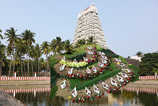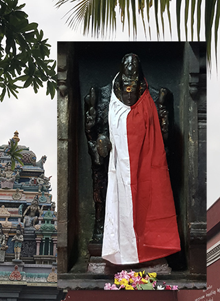 திருத்தலங்களில் நாம் நந்தி சுவாமியின் குறுக்கே செல்லக் கூடாது, தம்பதிகள் குறுக்கே செல்லக் கூடாது என்று நம் பெரியோர்கள் கூறுவது இந்த சுவாச பந்தங்களைக் களையக் கூடாது என்ற நல்லெண்ணத்தின் அடிப்படையில்தான். அவ்வாறிருக்க இறைவனே நடுவில் ஒரு கொடி மரத்தை அமைத்து நந்தியின் சுவாசத்தை தடை செய்கிறார் என்றார் அதற்கு நிச்சயம் காரணம் இருக்கும் அல்லவா ? எப்படி தந்தையாக இருக்கும் ஒருவர் தானே தன் மகனுக்கு குழந்தையாய்ப் பிறக்கிறாரோ, தன் மனைவியே அடுத்த பிறவியில் தன்னுடைய மகளாக வளர்கிறாளோ அது போன்ற பல பூர்வ ஜன்ம விளைவுகளைக் களைவதும் மேற்கண்ட கொடி மர அமைப்புகளின் பின்னணியில் அமைந்த இரகசியம் ஆகும். இங்கு நீங்கள் காணும் உத்தம சிவனடியார் உருவமான காரைக்கால் அம்மையாரின் உருவம் ஆடையின்றி இருக்கும்போது அது ஒரு விரசமான காட்சியாக அமைவதால் நீங்கள் மனதில் அந்த விரசக் காட்சியை மறைக்க முயலலாம். அதாவது நீங்கள் இருளைப் போர்த்தி அந்த காட்சியை உங்கள் மனதிலிருந்து மறைத்து விடலாம் என்பது உண்மையே ஆயினும் அதே சமயத்தில் அந்த இருளில் விநாயகப் பெருமானின் இறைக் காட்சியும் மறைந்து விடும் அல்லவா ? இத்தகைய குழப்பமான சூழ்நிலைக்கு விடையாக வருவதே எந்தக் காட்சியையும், தோற்றத்தையும் தத்துவார்த்தமாக அதாவது இறை தத்துவமாக, பெண் தத்துவமாக காண்பது என்பது. இத்தகைய தத்துவ காட்சிகள், தத்துவ விசாரம் பூரிக்கும் ஆண்டே இவ்வருடம். அடிஅண்ணாமலை, உறையூர் ஸ்ரீபஞ்சவர்ணேஸ்வரர் ஆலயம், மாந்துறை சிவாலயம் போன்ற திருத்தலங்களில் வழிபட்டு ஆத்ம விசாரம் செய்து வந்தால் மெதுவே, மெதுவே, மெதுவே இந்தக் காட்சிகளின் தத்துவ விளக்கங்கள் புரியலாகும். தத்துவங்கள் புரியும் வரை வழிபாடுகளை தொடர்ந்து கொண்டுதான் இருக்க வேண்டும், குருவருளால்.